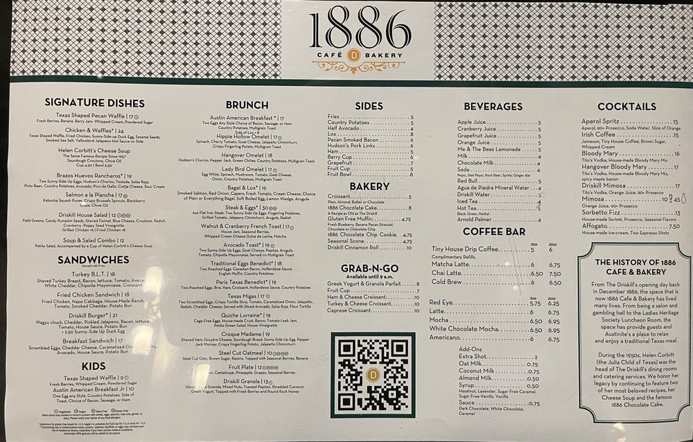 With options for gluten-free and vegan diets, 1886 Cafe & Bakery caters to a diverse range of preferences. Whether you're looking for a hearty breakfast or a leisurely brunch, this establishment has something for everyone. Don't miss out on their delectable pastries and signature Texas-shaped waffles when you visit!